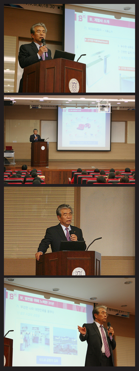 금번강연에서는 ‘미래를 준비하는 자세와 BN그룹의 성공신화’라는 주제로 31년의 역사를 지닌 BN그룹과 각 계열사의 소개 그리고
